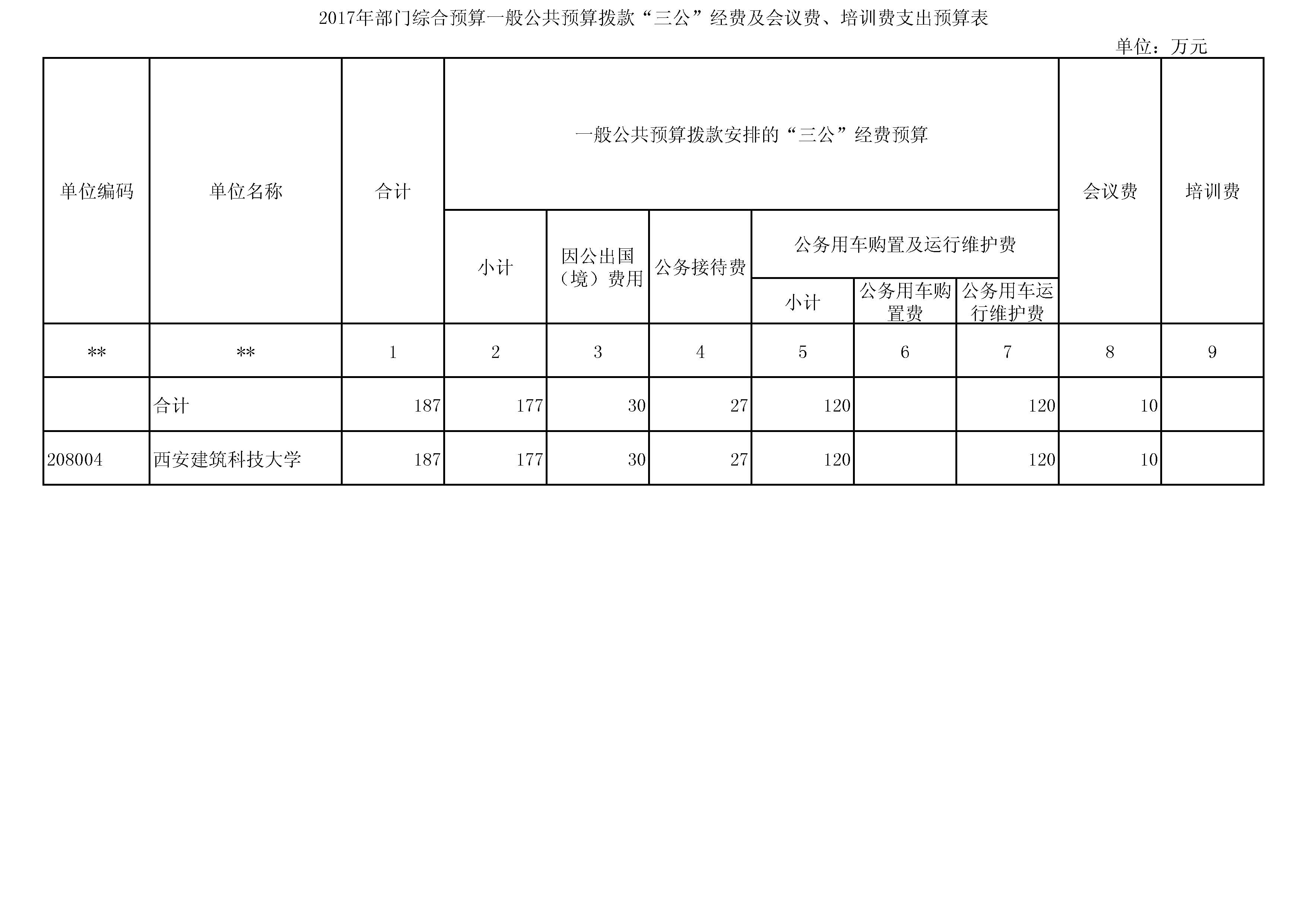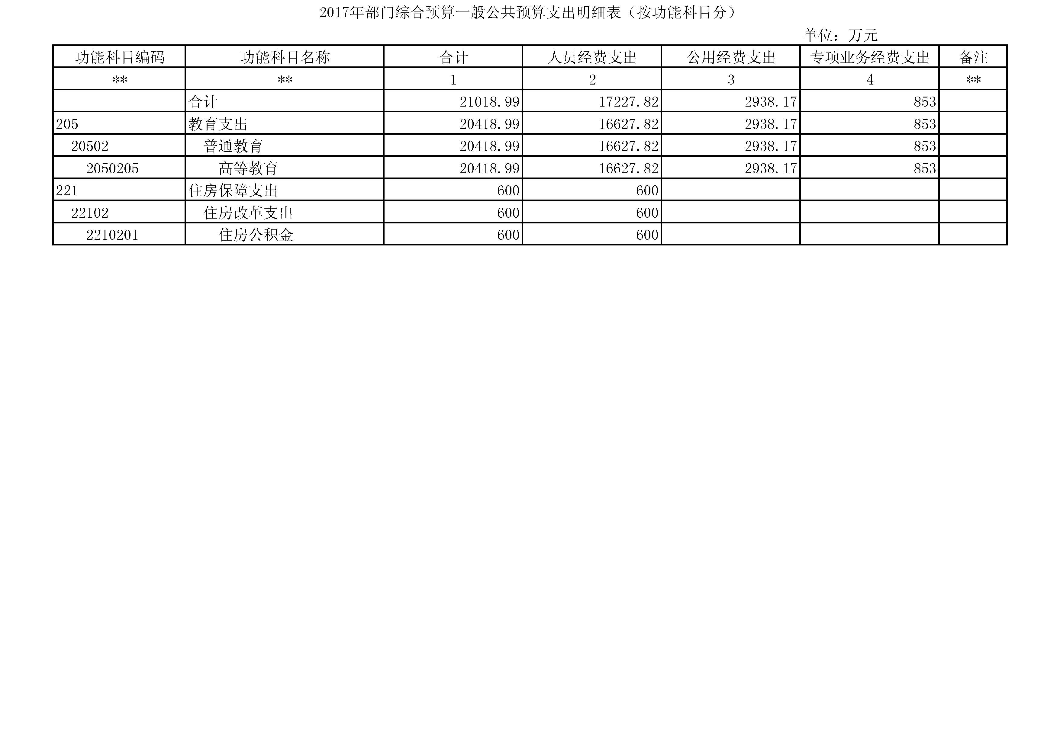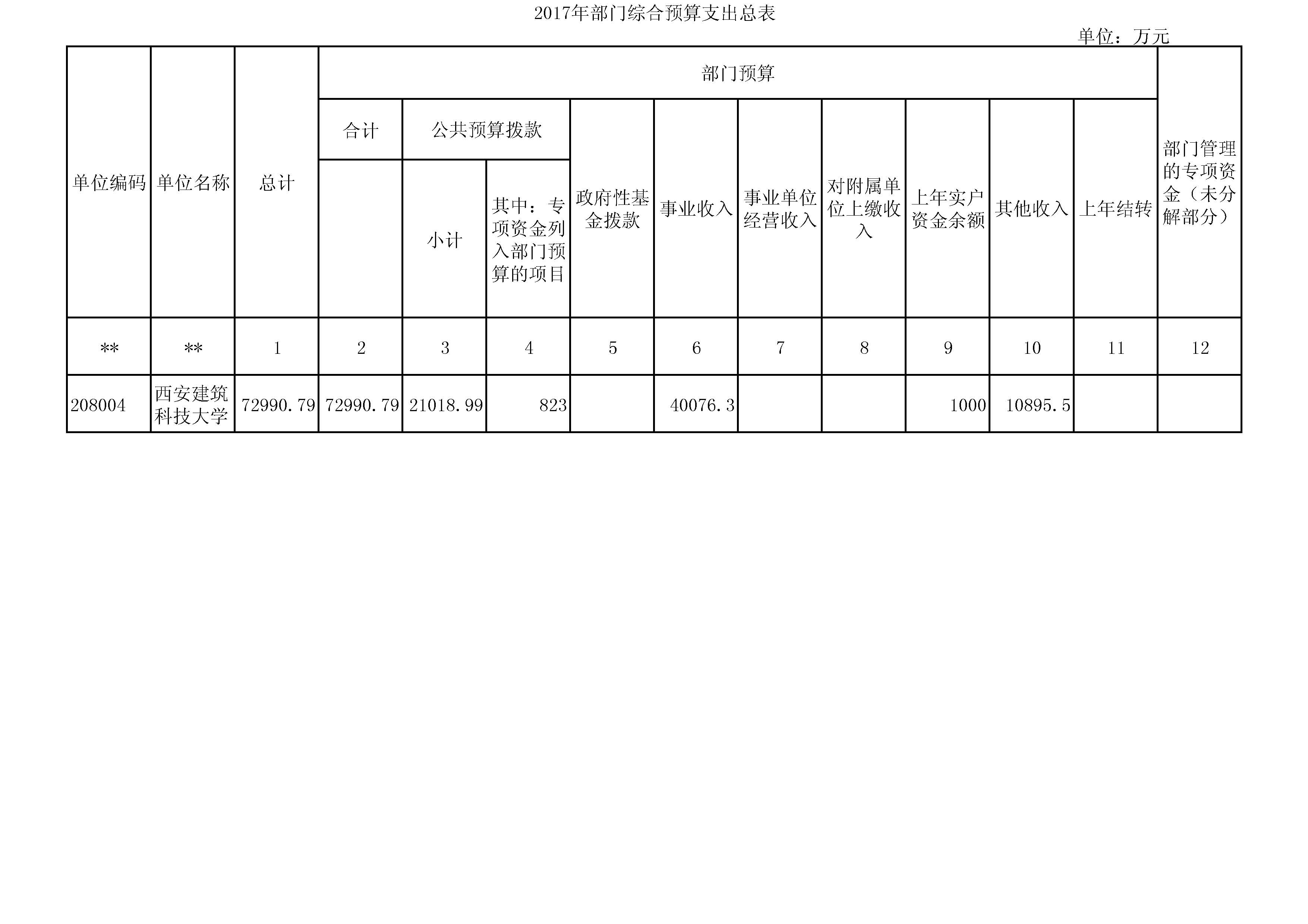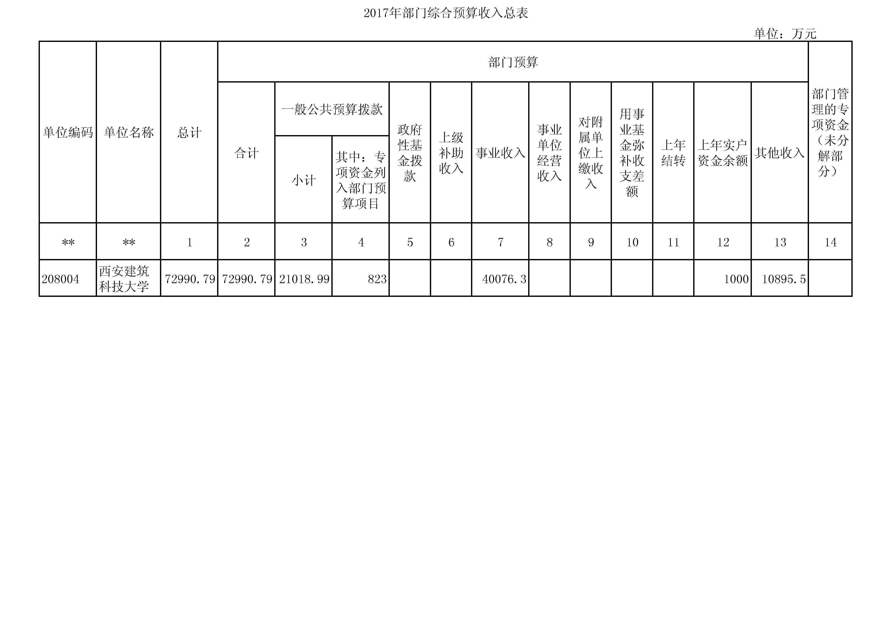 公共预算拨款:根据《陕西省教育厅关于2017年部门预算批复的通知》(陕教[2017] 60号)文件通知,西安建筑科技大学2017年部门预算财政拨款21018.99万 元,预算主要为学校包干经费预算。