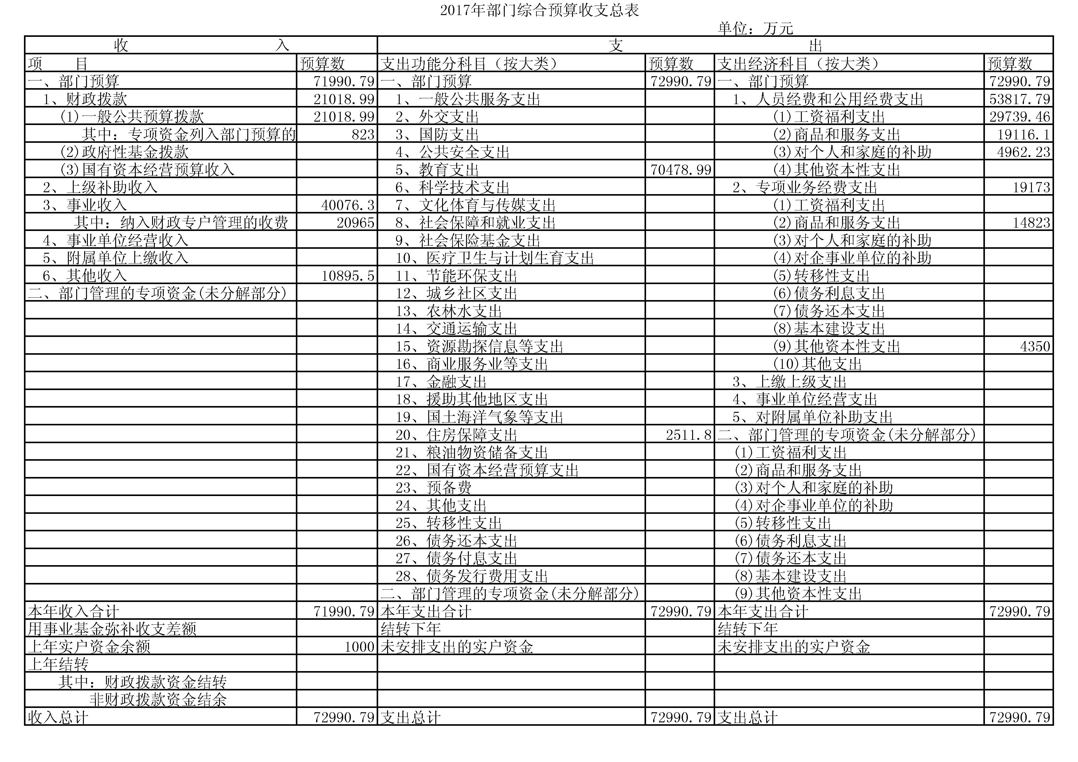 2017年西安建筑科技大学年初部门预算收入为72990.79万元,其中: