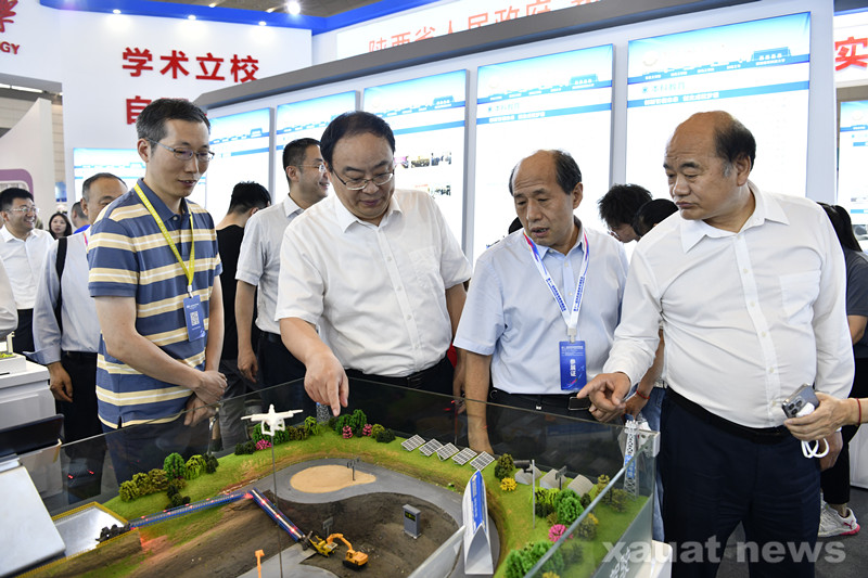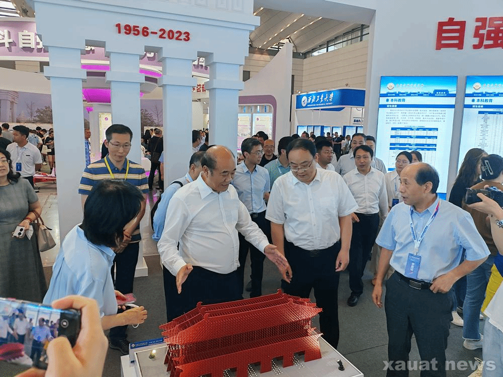建大新闻网讯 6月24日上午,由中共陕西省委教育工委、陕西省教育厅主办的“第十一届陕西高等教育博览会暨第七届陕西高校科技成果第七届陕西研究生创新成果展”在西安国际会展中心开幕。陕西省委教育工委书记刘建林、陕西省教育厅厅长王树声等领导到场莅临参观。副校长黄廷林和相关部门负责人到我校展位指导工作,并慰问工作人员和学生志愿者。刘建林、王树声等委厅领导在黄廷林的陪同下参观了我校展位,并与我校代表进行了亲切交谈,详细询问了展品的创新点和应用价值等情况,对我校的人才培养、研究生创新成果和科技成果转化给予了高度评价。